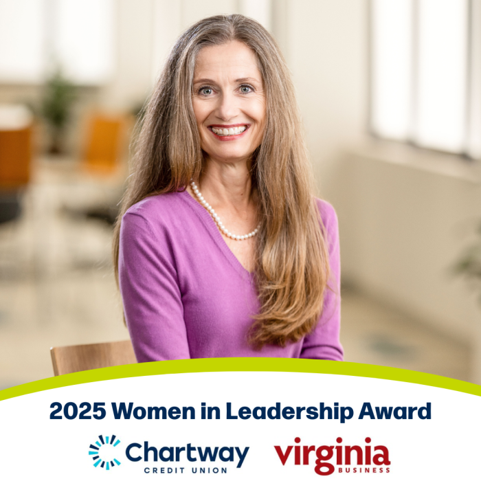 Virginia Business has selected Rebecca Riordan, chief people & culture officer of Chartway Credit Union, as a 2025 Women in Leadership Awards recipient.