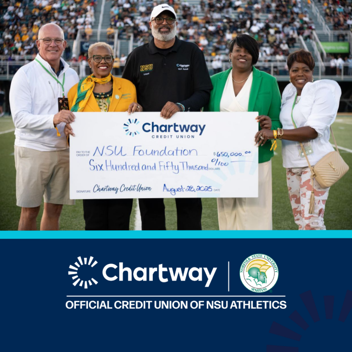 Chartway Credit Union is proud to renew and expand its relationship with Norfolk State University (NSU) to include a multi-year sponsorship as the “Official Credit Union of NSU Athletics.”