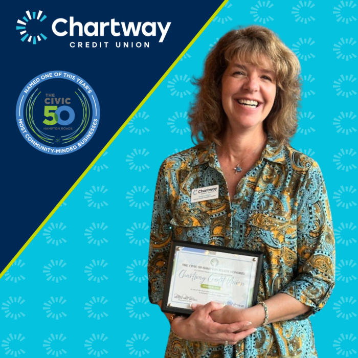 Chartway Credit Union has been named an honoree of The Civic 50 Hampton Roads by VOLUNTEER Hampton Roads and Points of Light, the world's largest organization dedicated to volunteer service.