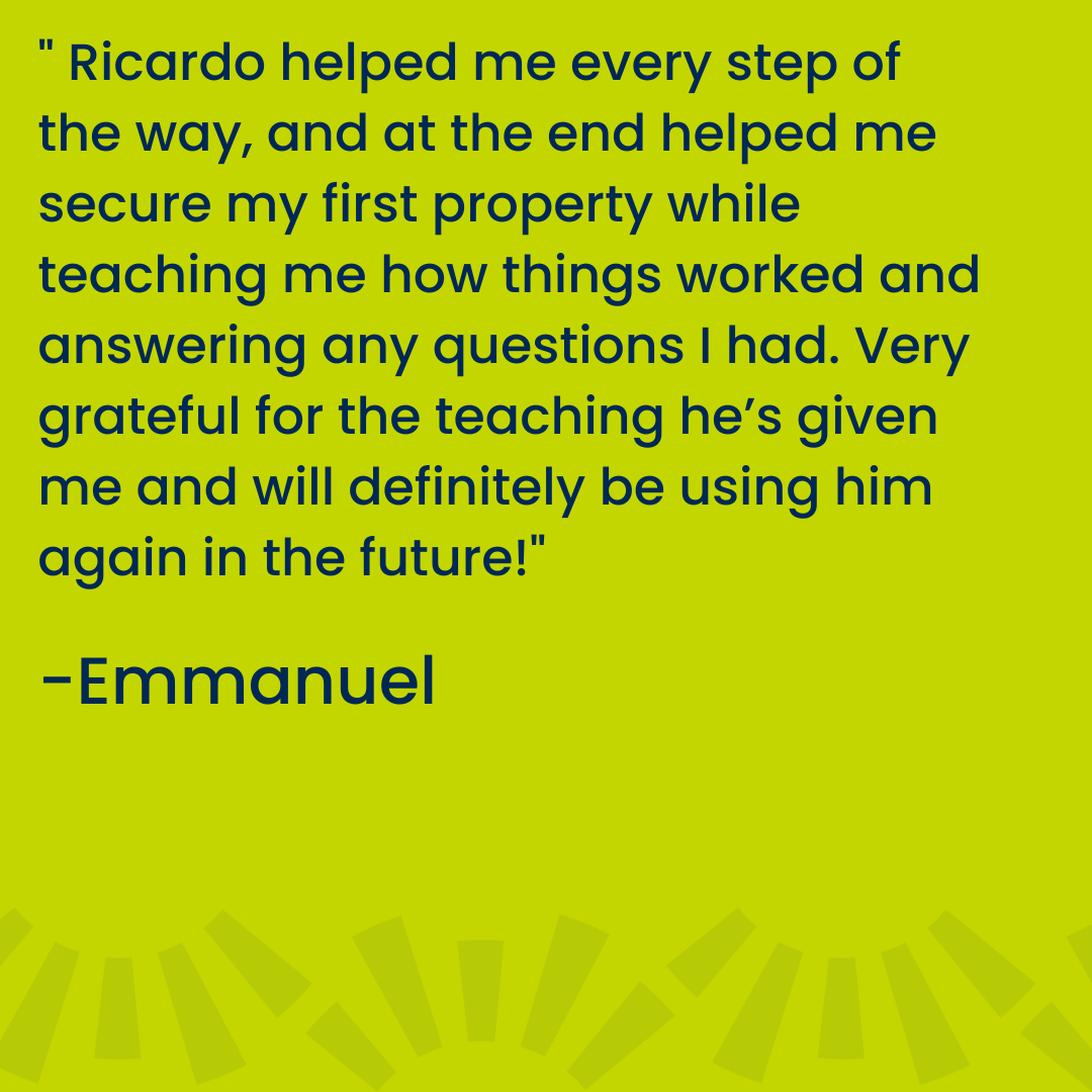 Take a look at what members are saying about Ricardo's service. Ricardo prides himself on his attentitiveness to client needs and his resourcefulness.